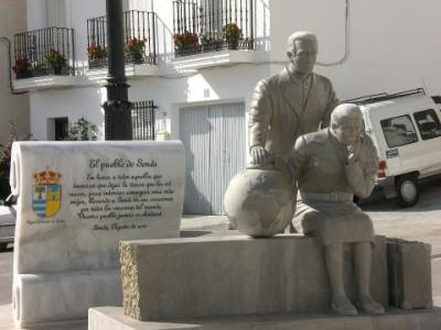 Descripción: Inaugurado un 7 de a-gosto de 2010 se recuerda a los natura-les de la localidad almeriense que en el pasado han tenido que abandonar, por centenares, Senés en busca de otras o-portunidades de vida. Financiada por los propios vecinos a través de su consisto-rio y contando con la colaboración de la Mancomunidad de Municipios Filabres-Alhamilla se ha realizado sobre mármol Blanco Macael. Compuesto por dos figu-ras, un hombre y una mujer, acompaña-dos por el globo terráqueo sobre el que ella apoya la incertidumbre y, quizás, el temor, de la partida hacia una nueva rea-lidad más o menos desconocida.